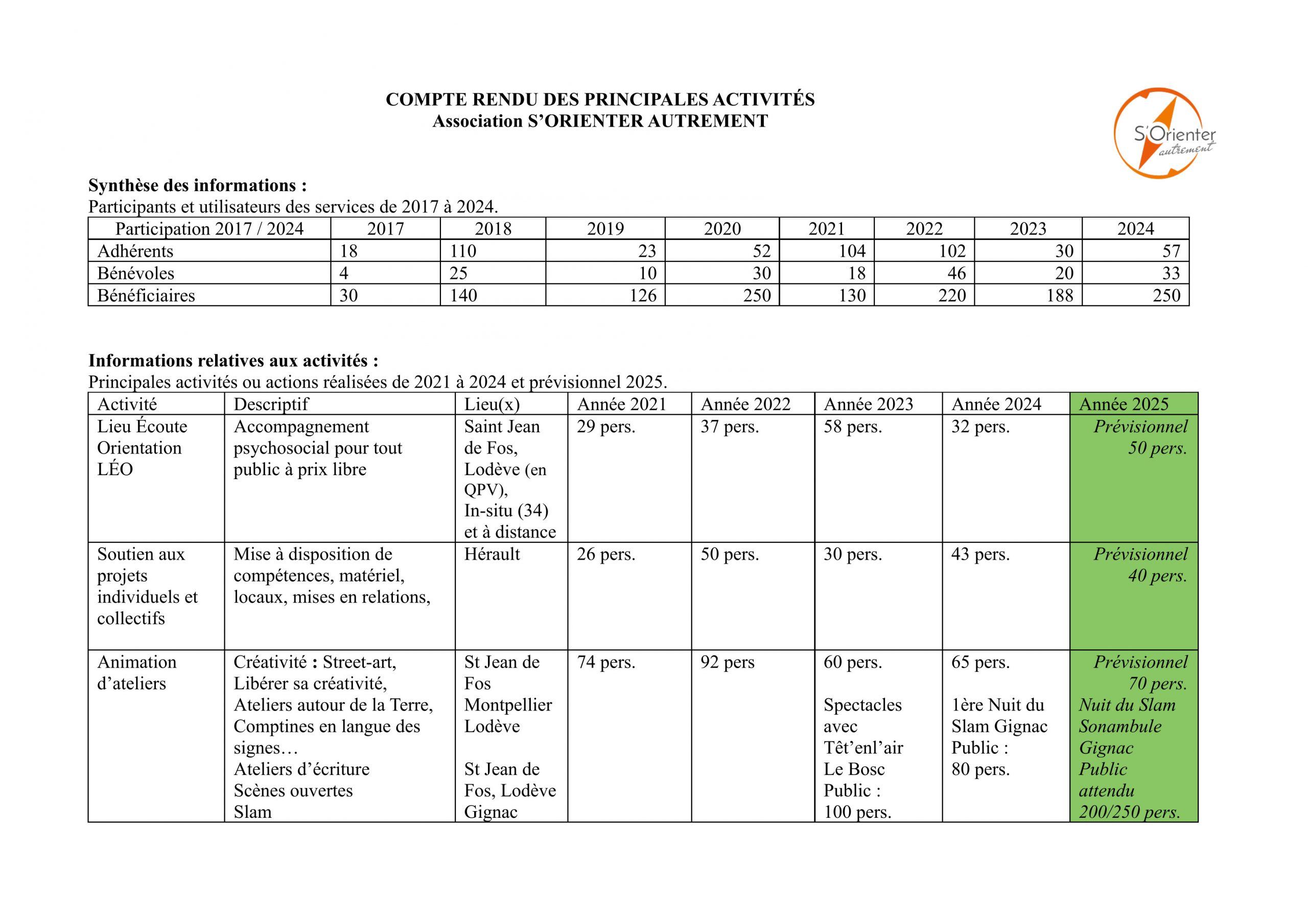 Origines du projet : L’association S’orienter autrement S’OA est crée le 31 janvier 2017 à Gignac par quatre professionnelles de la santé, de l’enseignement et de la recherche en sciences humaines. Le projet est issu d’une vingtaine d’années d’expérience de sa conceptrice, psychosociologue et poétesse, dans les domaines :